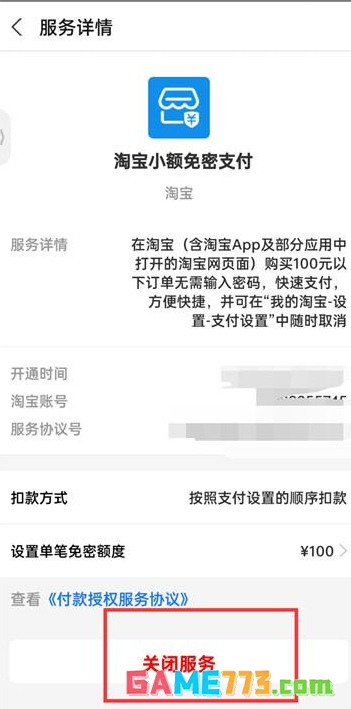 5、最后在小额免密支付的页面中点击【关闭服务】即可