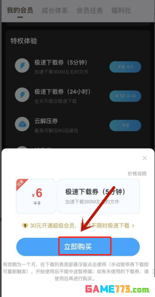 3、最后,点击下方的【立即购买】选项即可成功进行提速。
