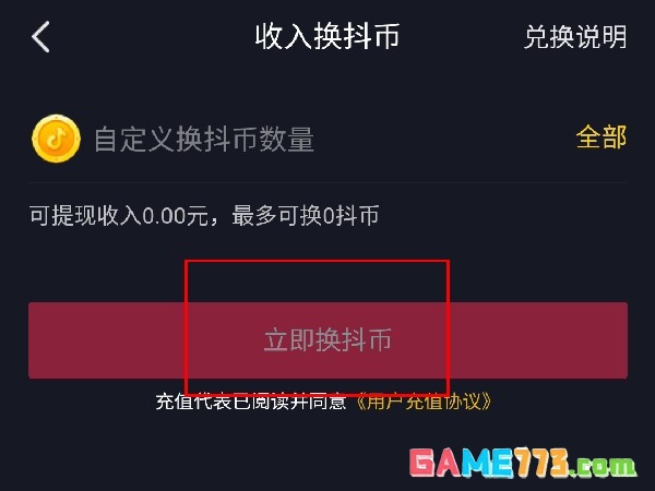 3、然后输入需要兑换的数量,点击【立即换抖币】即可。