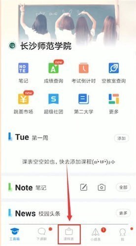 1、打开超级课程表APP,选择【课程表】。