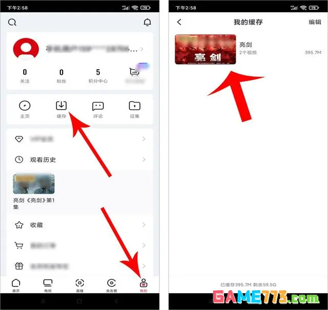 3、缓存完毕打开我的界面点击“缓存”,即可找到缓存好的视频。
