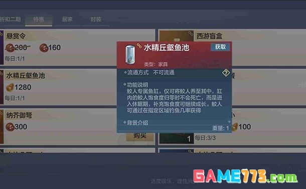 就有机会获取更高等级的侍从了。大家可以选择把美人鱼放入鲛人专用鱼缸【水精丘壑鱼池】中培养,也可以在普通鱼缸中培养,不过专属鱼缸中,美人鱼的饱食度变成0 ,
