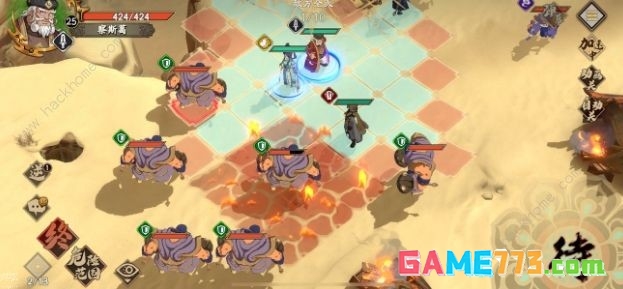 R3.夏侯猛揍火胖子,封姐开技能给夏侯,正好能把挡刀的小铁卫打死。