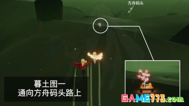 首先我们前往墓土图一,在通往方舟码头的路上可以看到一株樱花小树苗,如下图所示。
