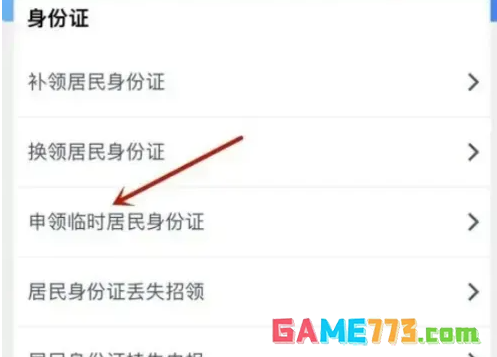 点击申领临时居民身份证即可完成。