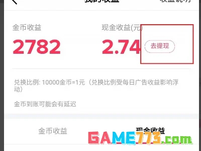 3、在“我的收益”界面点击“去提现”。