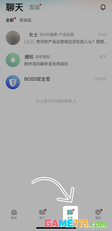 BOSS直聘APP端【消息】。