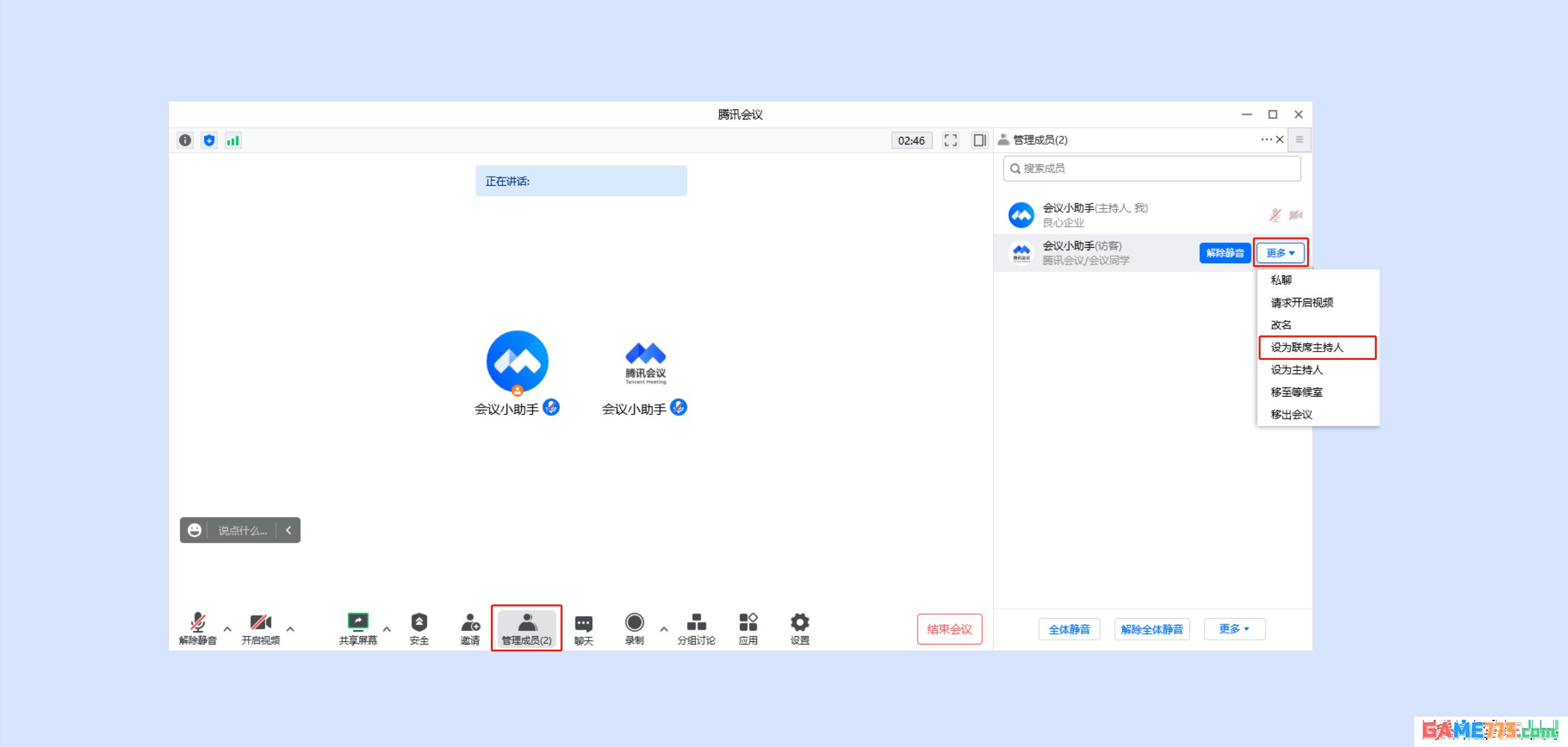 腾讯会议设置联合主持人要怎么设置 腾讯会议怎么转让主持人