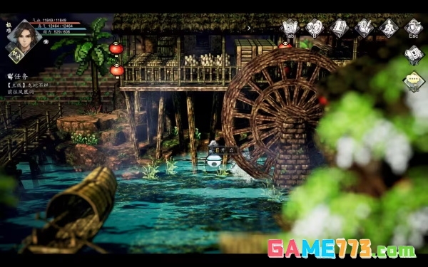 隐蔽宝箱①水车旁,岸边涉水可达