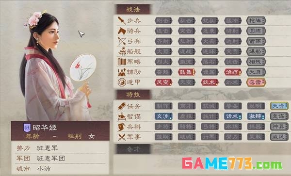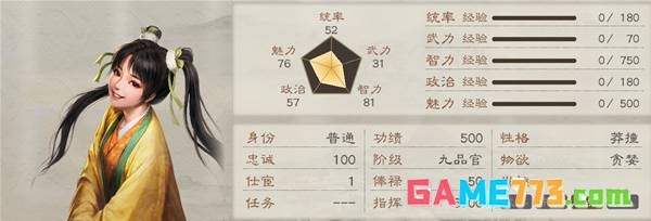 85政治+83魅力,除了警备之外的内政特技都有2级,显然是种田系人才。