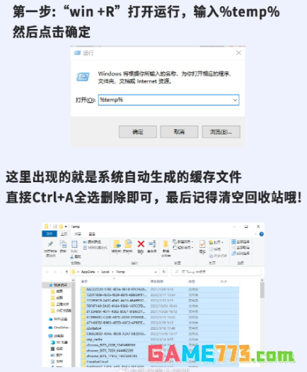 1、win+R输入%temp%回车-ctrl+A全选文件-按住shift+delet删除