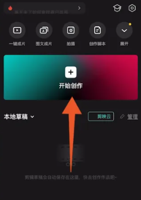 1、进入手机剪映APP,先点击中间的【开始创作】按钮。