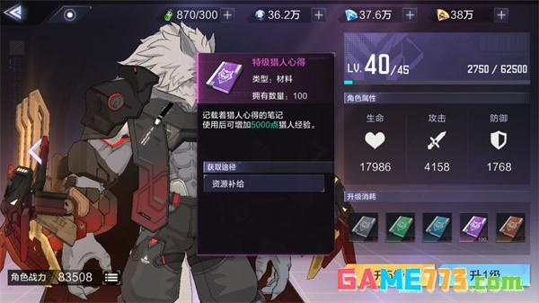 2、猎人等级【猎人心得、突破结晶】