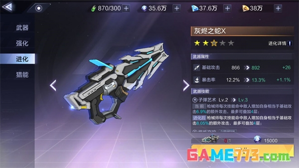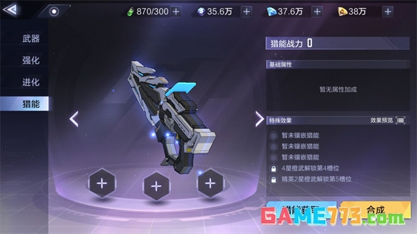 当然,武器本身的培养也包含了强化,进化以及猎能的镶嵌,下面给大家简述一下各项操作需要消耗的资源。