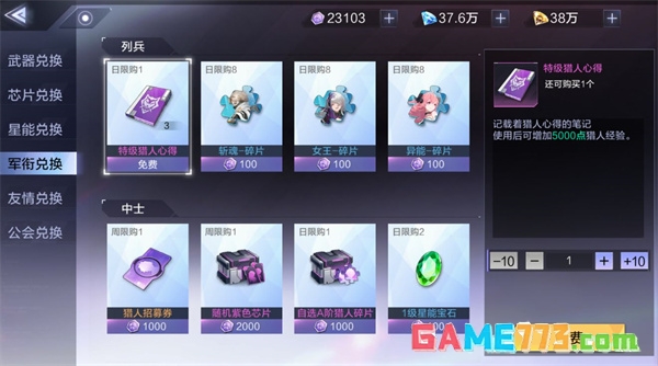 注:勋章在军衔商店等地方可以兑换到大量提升指挥官实力的材料,包括猎人碎片和招募券,以及芯片等道具。