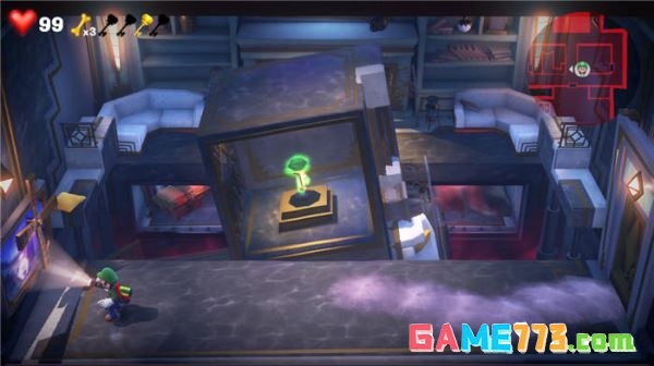 第二间房间要在左边吹风扇,操作分身关闭电闸机关,然后再去捡取绿宝石钥匙