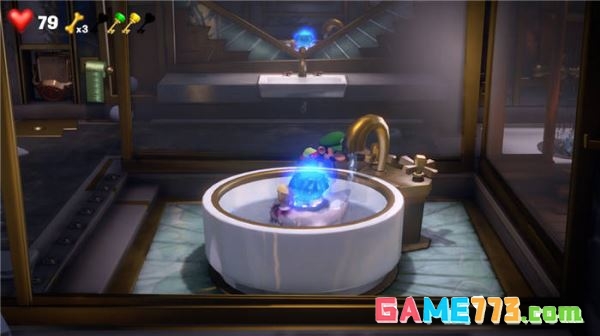 第三间房间是洗浴室,也是要拉电闸,然后去浴缸那里用吹的方式,把水龙头打开得到钥匙蓝宝石钥匙
