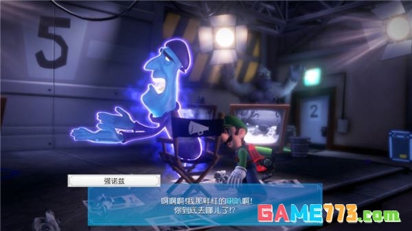 里面坐着一个鬼怪导演,电梯按钮也在它的手上,我们只要把它找到喇叭就可以得到按钮。