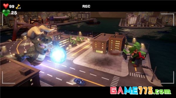 Boss是路易吉打小怪兽,我们要等待怪兽发出气功波的时候,我们同时操作分身吹向怪兽自身,连续三次就可以了,之后就简单了,拍完这部片就能得到电梯按钮了