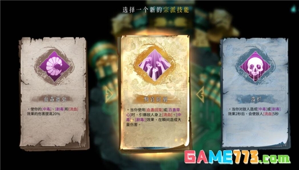 本流派的宗派技能,也全部集中在“血”与“毒”上,就连图标本身,都包含着浓重的“邪恶气息”。