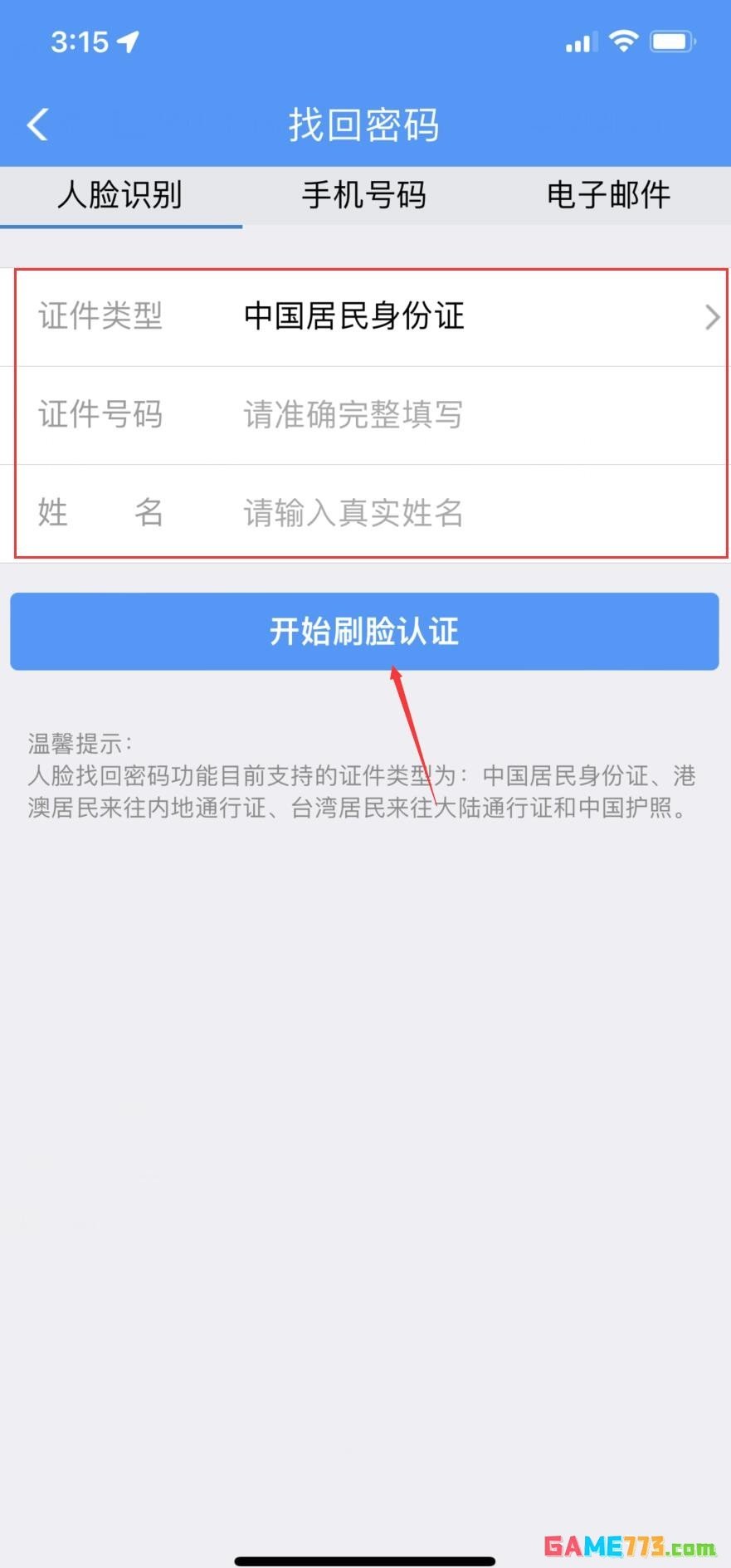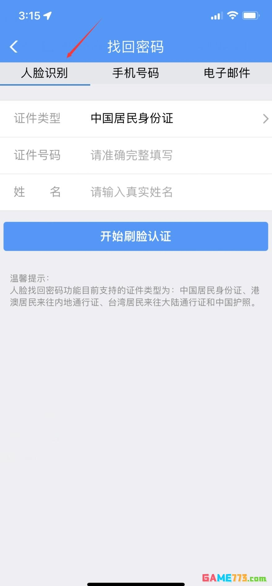 2、点击【忘记密码】,进入页面后,可以看到有三种找回密码方式,这里以刷脸识别为例;