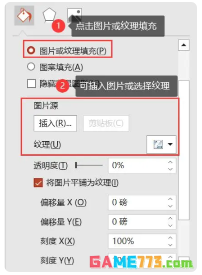 2.点击【填充】选项,找到【图片或纹理填充】;