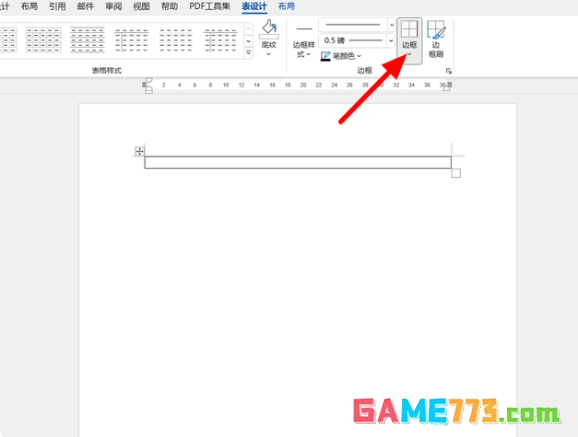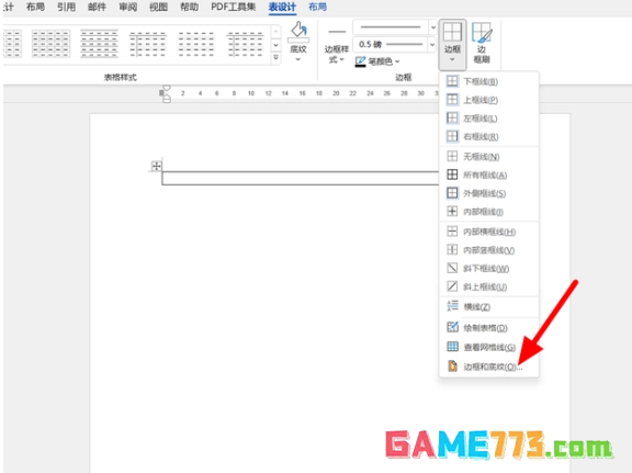 完成插入,在表设计选项下,点击【边框】,接着单击【边框和底纹】。
