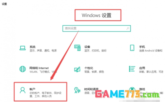 1、点击win10的开始菜单,选择设置打开,继续点击“帐户”进入。