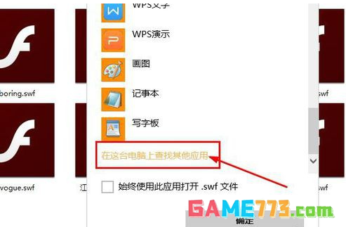 3、如果打开方式中没有播放器,就要右键后浏览到FLASH软件安装路径下找到Player文件夹。使用的是win10.