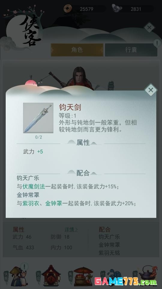6.钧天剑:搭配伏魔剑法、紫羽衣、金钟罩,触发武力5.