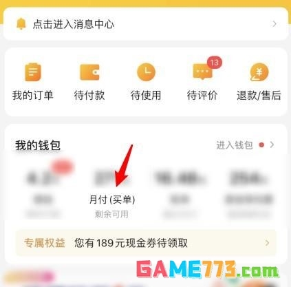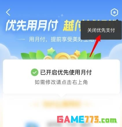 5、点击后,选择优先使用月付后方的开关。