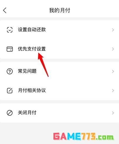 3、点击后,选择优先支付设置的选项。