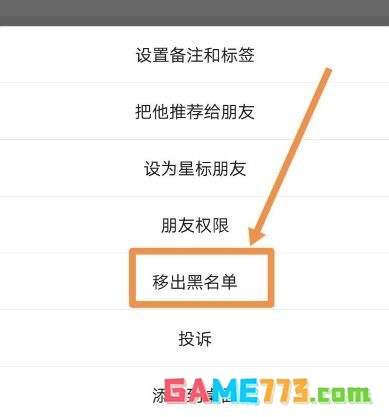 第五步:在设置中找到如图方框中“移出黑名单”即可。