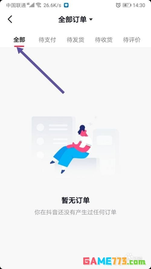 订单里面就是全部你在抖音里面购买的东西了,因为这里我没有买过,所以是“暂无订单”。