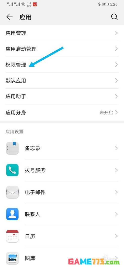 这样,我们就进入了手机自带的应用管理界面,点击第三栏的权限管理。