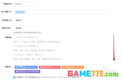 在屏幕右边就会出现本公司内的所有考勤组。找到你要取消人脸识别的考勤组名称。