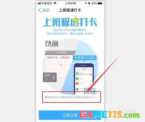 钉钉自动打卡成功的前提之四那就是管理员开启了极速打卡功能,没开启的话我们也没办法自动上班打卡。