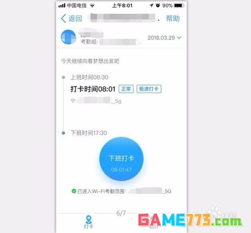 上面的前提都做好之后,只要我们在考勤时间连接公司wifi后打开钉钉,就可以实现自动极速打卡了,不需要多余的操作。因为今天写这篇经验的时候已经是下午了,所以我现在没办法测试自动打卡的功能,等明天上班我打开手机钉钉打卡测试下过程。