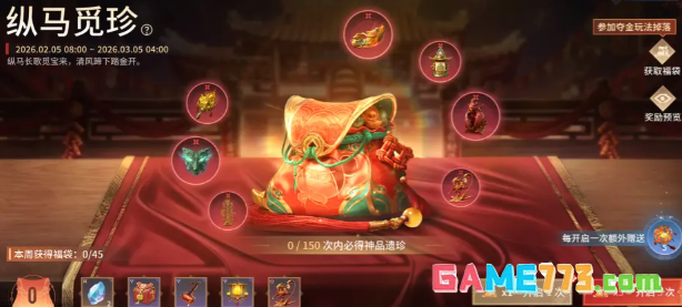 “福袋随行”活动依托于常驻玩法“侠影夺宝”展开:玩家在活动期间参与该副本,即有机会掉落新春福袋。每个福袋开启后随机获得道具奖励;累计开启达指定次数后,可解锁额外奖励池,包含宝箱及马年限定神品遗珍——该遗珍为2026年生肖主题专属,全服限量产出。