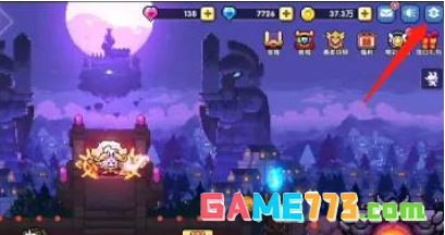 1、进入游戏后点击主页右上角箭头所示的设置。