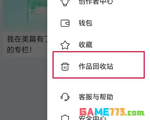 第二步打开美篇侧边栏之后,点击作品回收站
