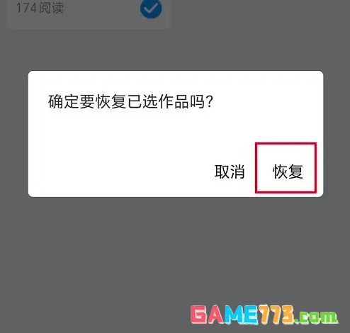 第四步弹出框之后,点击恢复,就成功恢复删除的作品内容了,根据需要使用