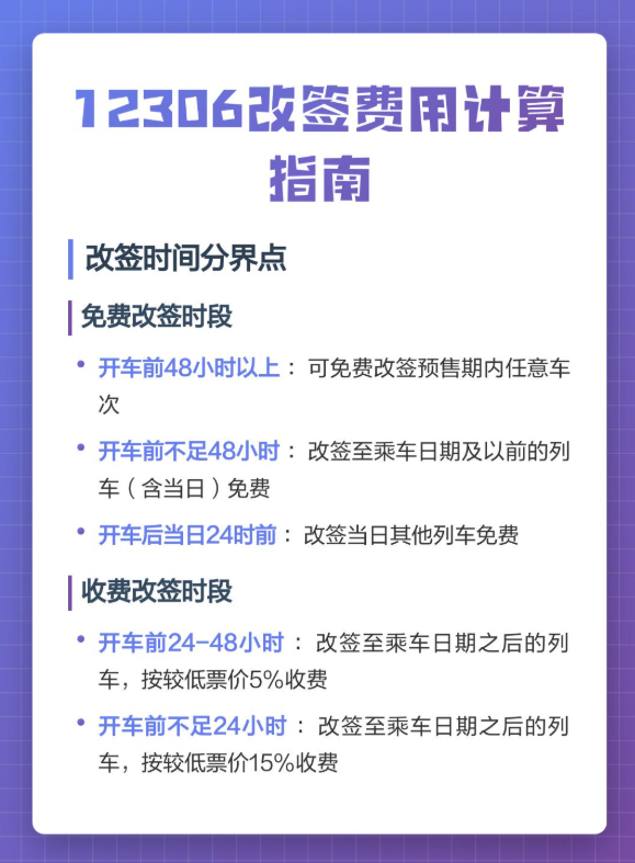 开车前不足48小时:改签至乘车日期及以前的列车(含当日)免费