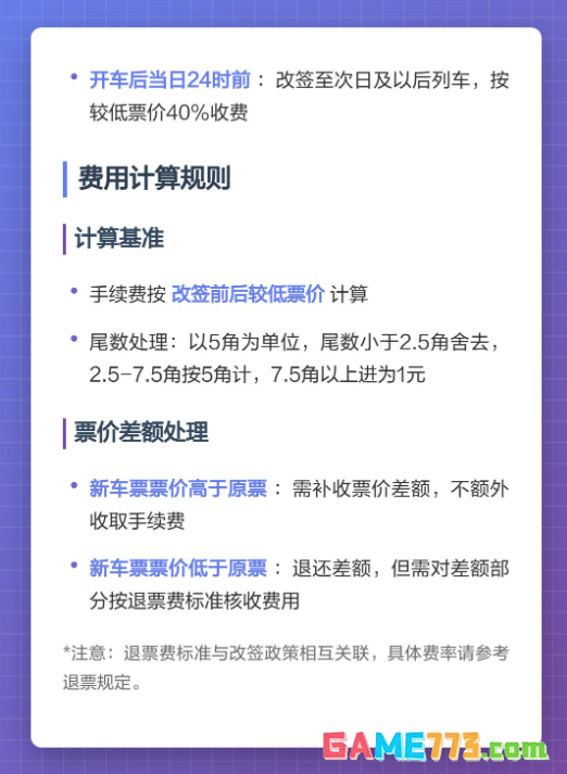开车后当日24时前:改签至次日及以后列车,按较低票价40%收费