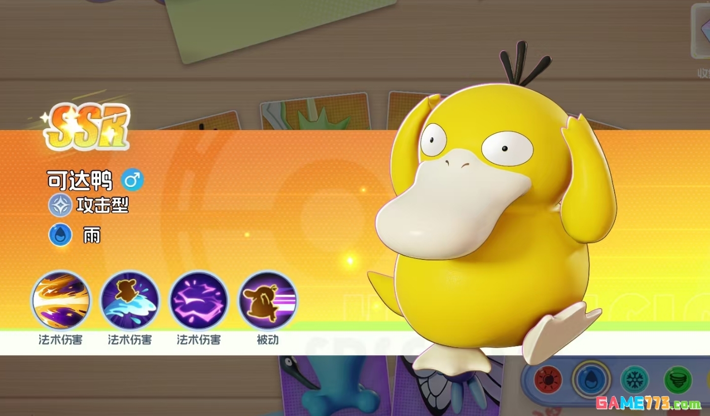 兼顾了输出与控制的可达鸭也是能玩家免费拿到手的宝可梦,它可通过被动和41级技能令敌人陷入无法动弹的状态,配合上大招的高爆发群伤,能稳定地在战斗里打出夸张的法术伤害。即便在被近身时,解锁了11级技能的可达鸭还可通过击退敌方来保护自己。