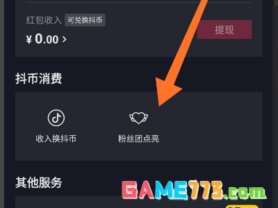 3、接着在打开的钱包页面中,找到并点击粉丝团点亮功能,如下图所示。