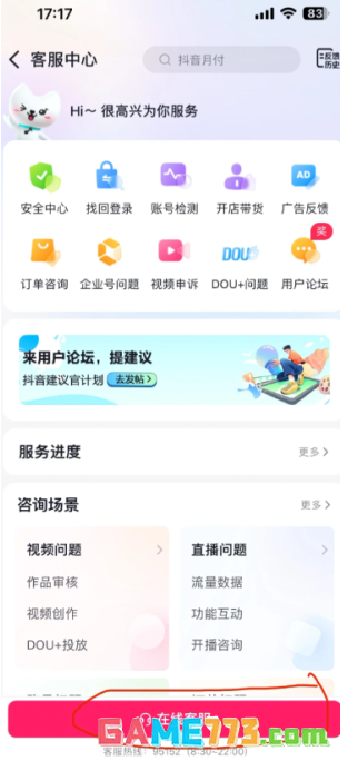 找到“我的客服”,会出现“在线客服”,点击后,就会出现问题大集,选择自己想要解决的那个问题就可以了。