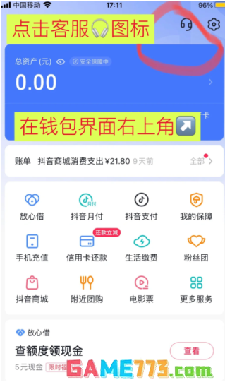 2、找到【我的钱包】,在钱包界面,右上角有一个客服的按钮,进入钱包客服中心。