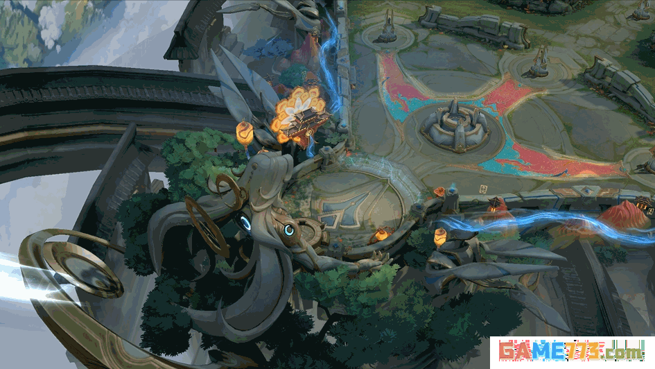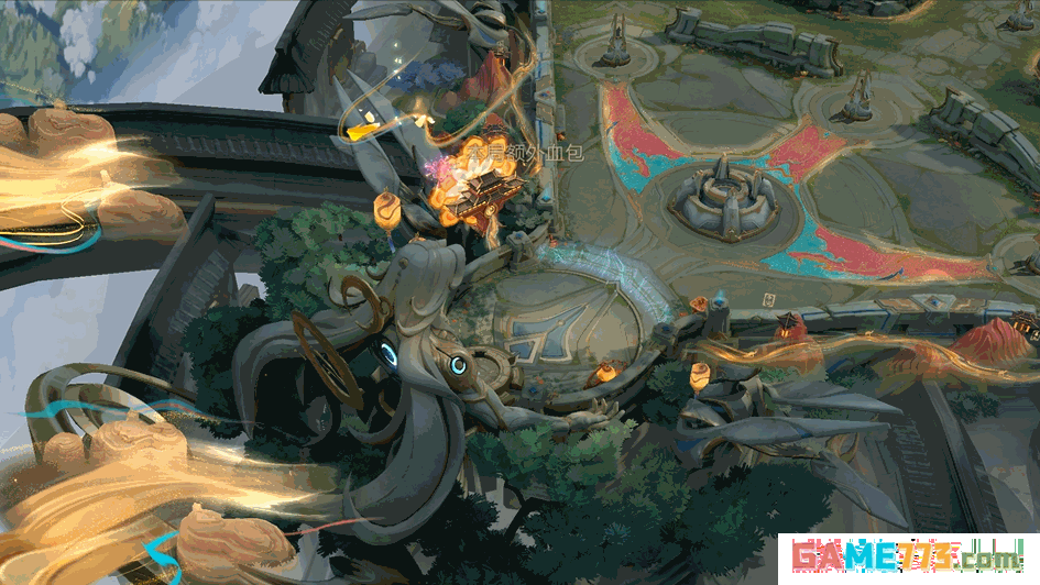 丝绸之路·拨云的出场动画是绿色特效,野区野区会进行小幅地形变化,受到英雄攻击时会获得额外护盾庇护。如下图展示,三处地形都有所变化。
