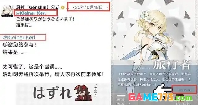 有不少细心的网友们也发现了,其实2020年10月份,在外网官方的一个故意设置的动态中就专门艾特过这个名字了,可莉的爸爸克莱纳的英文名KleinerKerl,翻译过来也刚好是克莱纳科尔。